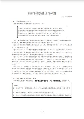2017年度から2年間に亘り、香港日本人学校小学部香港校に特設された「グローバルクラス」において、先進的プログラム(コース概要、カリキュラム、指導方法、評価方法、教員研修等)の開発を進めてきた。